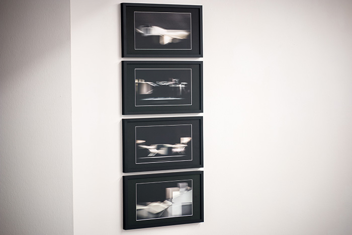 Bewegung21 consists of four framed film stills, taken from the filming of Skulptur21. A video camera was panned alongside the sculpture, to the effect of the image becoming blurred. Bewegung21 shows a renewed transformation of movement, mirroring the transformation of Rhythmus 21 through Skulptur21.